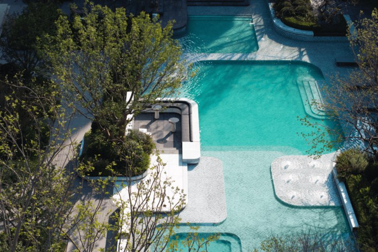 水景是开发商景观设计上的难点。除了考验审美与技艺,对后期维护的要求也很高,所以一般小区的水景都小而散。