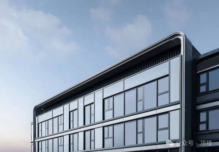 销售后来介绍,这是“天字系3.0”的设计语言,南北立面同标,山墙和北面也用的铝板+玻璃,在园区能做到这个配置的项目不多。“不管从哪个角度看,它都是好看的。”