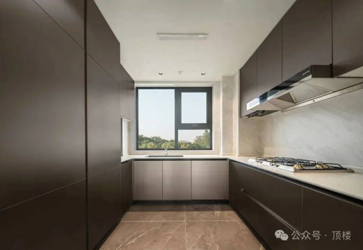 U型厨房与餐厅一体化衔接,配备斯麦格厨电五件套。在看不见的隐蔽处,同样配置了大金中央空调、百朗新风、菲斯曼锅炉等一线品牌。