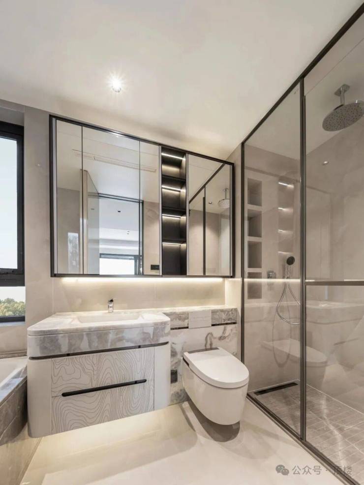 在看房途中,我们留意到,项目外立面已有部分楼栋实景呈现。大面积落地玻璃配着高级灰的铝板,阳光下泛着细腻的光泽,和周边那些传统楼盘确实不太一样。