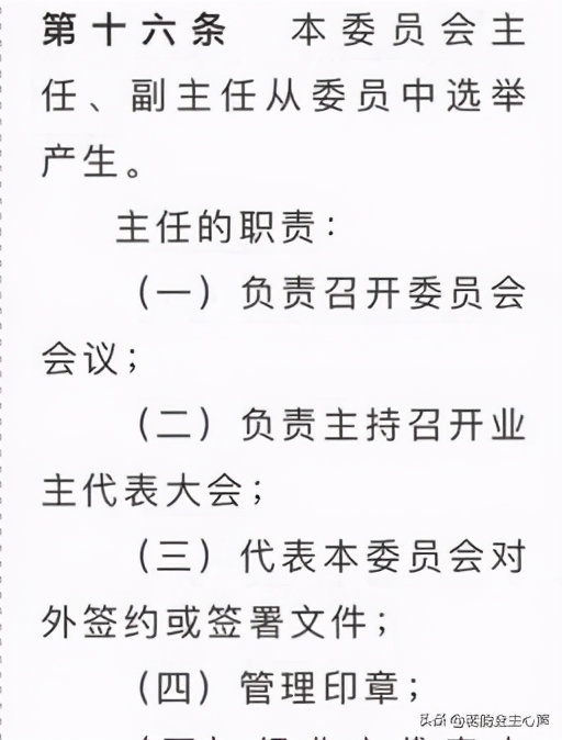 4.一定要明确业委会“官员”-主任副主任的产生和更换规则,以条款的形式进行明确;否则,有些不称职或者变心的“官老爷”会认为自己可以家长制;很多不明确的更换走程序会很漫长,导致一错错一届,委员和业主都伤透心。