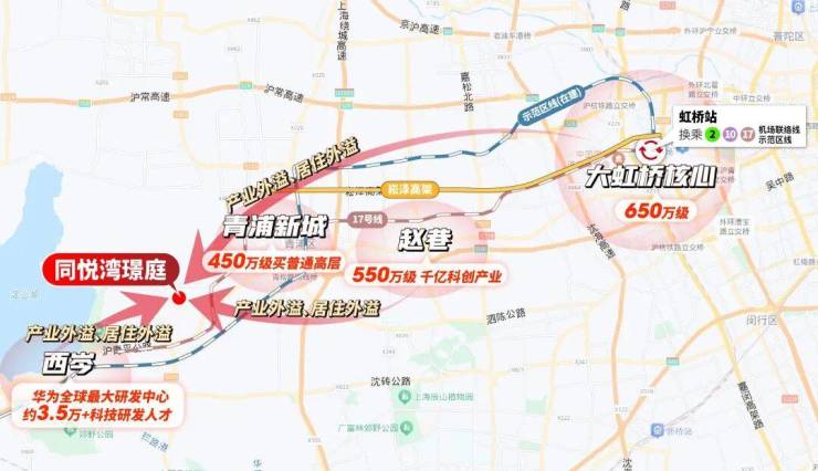 同悦湾璟庭所在的朱家角,向西是长三角一体化示范区,向东是虹桥商务区,17号线+示范区线串联双国家级规划!