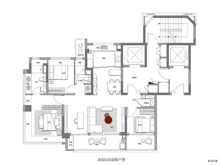 建面约125㎡高层户型
