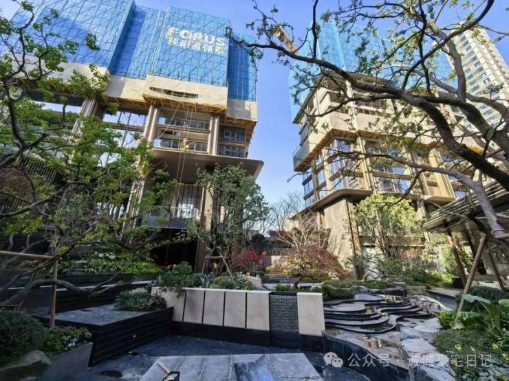而在3、5号楼之间,则搭建了【围炉夜话】场景空间。古木纹奢石砌成的火炉旁,整木炭化石凳散发着山林野趣,一株红舞姬枫树翩然伴舞。冬日傍晚,好友围坐,体会名门温情。