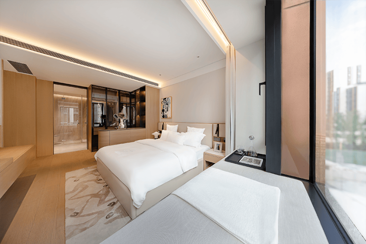 这里动静分明:静区如同沉思的书房、亦或待客的私宴厅;动区则汇聚恒温泳池与健身空间,释放身心活力。与此同时,三座社区会所分布于各组团之中,将日常的温暖社交与中央会所(会籍制)的仪式感体验交织融合,共同铺展丰盈而从容的生活图景。