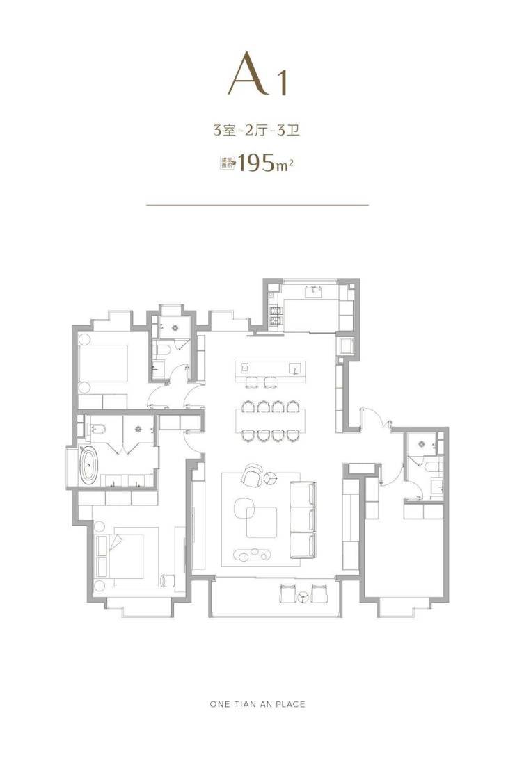 而另一个大户型175㎡,也几乎是195㎡的缩小版,同样三套房的设计保证了超强的舒适度。