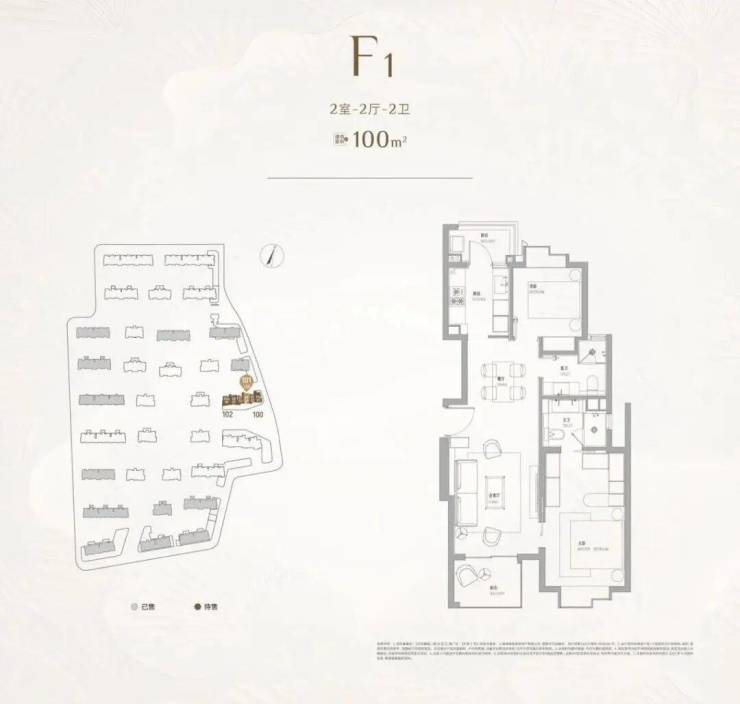 最后,来看户型图:建面约100㎡2房2卫,这是整个天安1号B区唯一一个总价在千万以内的产品,上车首选。