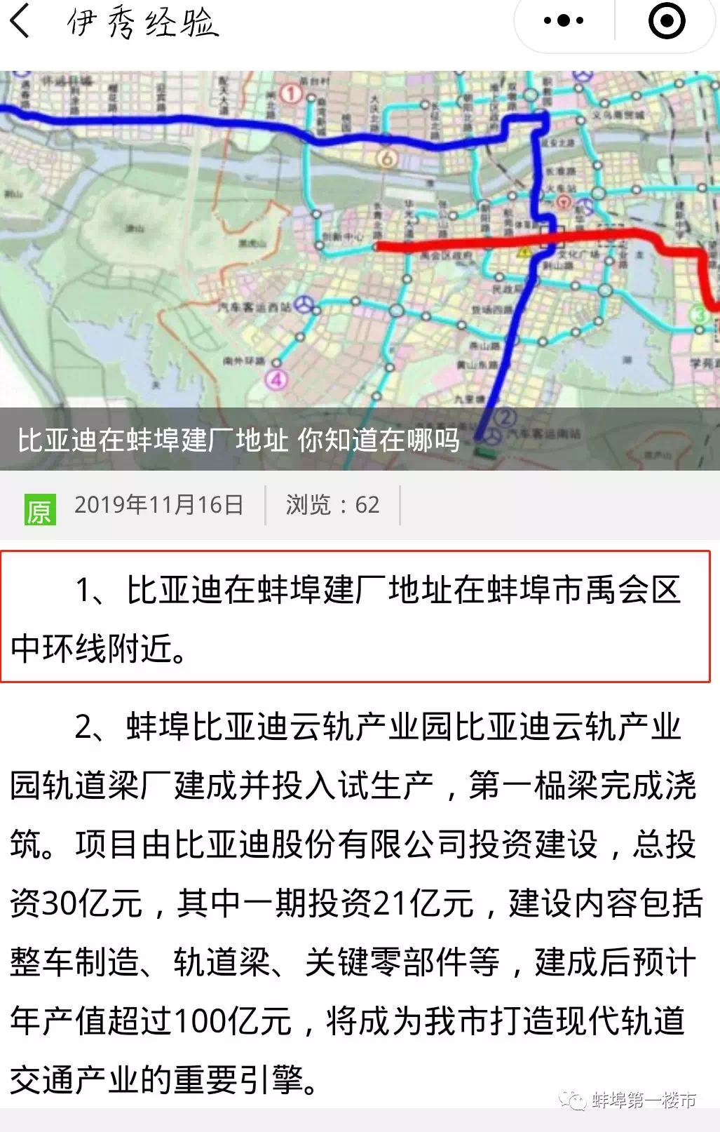 网曝!蚌埠比亚迪云轨建厂选址禹会,总投资30亿!秀水实验学校明年交付,大禹文旅示范区落址城西!