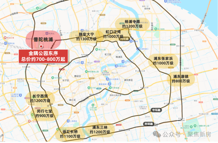 我们纵观这条金色中环带上的诸多板块,目前房价还未被狂热炒作、尚能称得上“价格洼地”的宝藏地段,唯有金隅公园东序所在的桃浦智创城。
