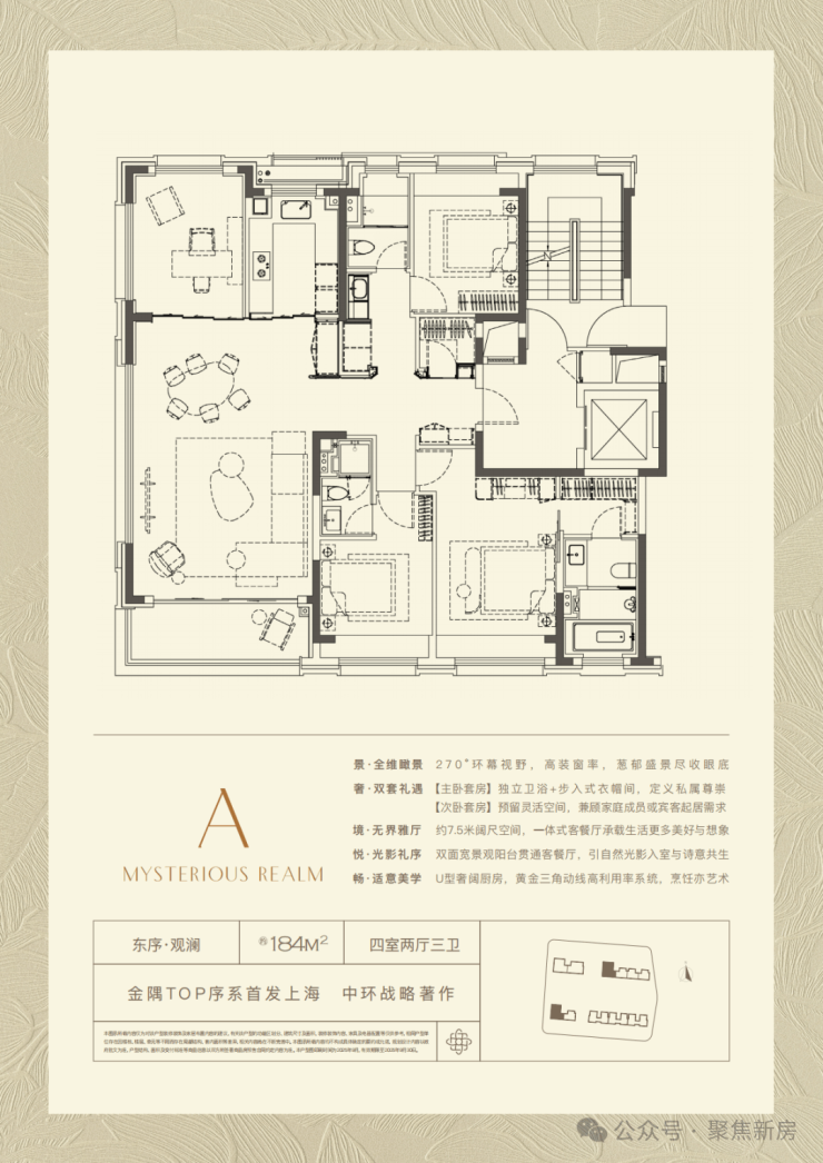 约184㎡公园头排景观房,四房两厅三卫格局,LDKB一体化设计!