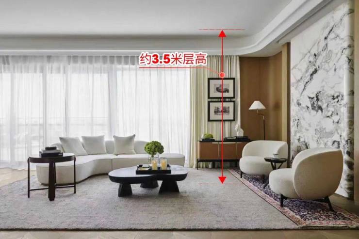 约3.5米奢适层高,通透开阔,尽显顶豪尺度;