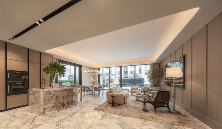 建筑沿袭新衡复美学,融合ART-DECO经典线条与海派红砖肌理,复刻老上海洋房优雅风骨,兼具历史底蕴与现代奢感。园林打造“三轴、两街、十大组团”景观体系,将海派花园意境与滨江生态相融,全冠移植名贵苗木,搭配休闲步道、水景小品,移步易景,重现衡复风貌区的隐奢氛围,营造城芯度假式居住体验。