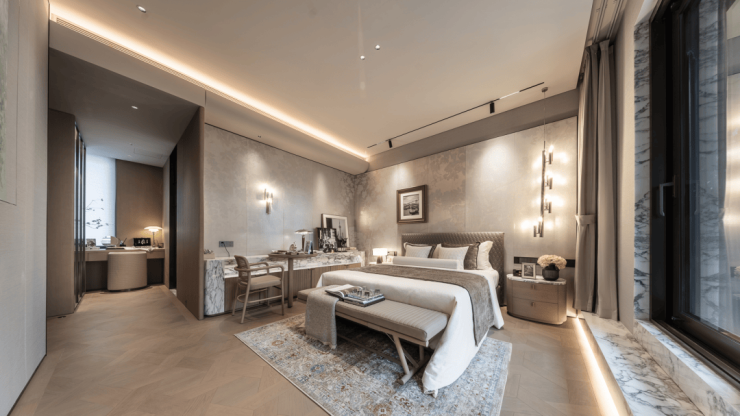 首层作为家族欢聚与圈层社交的主场,开阔通透的格局兼顾日常团圆与宾客宴请,烟火气与仪式感兼具;二层打造静谧休憩与子女成长的私密天地,动静分区清晰,守护居家安宁;三层规划行政主卧套房,以完整大平层尺度呈现,将睡眠区、步入式衣帽间、观景卫浴与空中露台串联一体,极致舒展的空间布局,诠释顶奢居住的舒适内核。