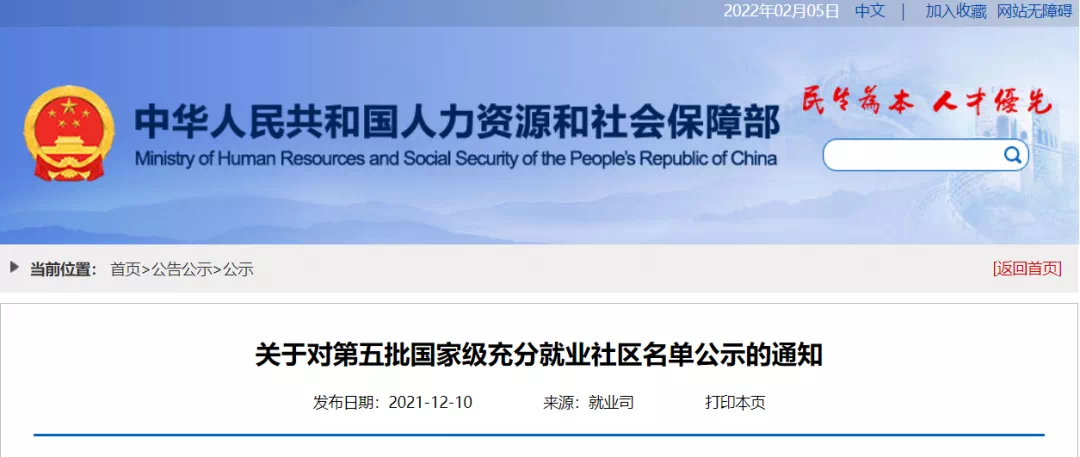 近日,人力资源和社会保障部公布第五批高级充分就业社区认定结果。