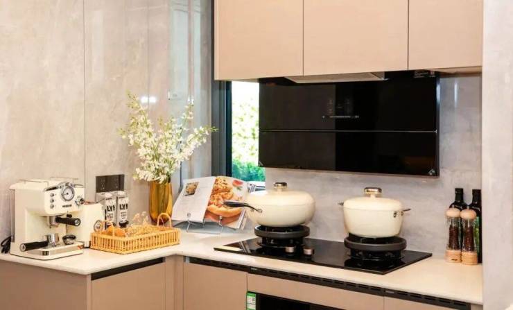 关照东方家庭的饮食习惯,科学规划厨房的空间功能,为家庭料理打造流畅的操作动线。半开放式厨房,不仅可开窗通风,同时精选方太品牌高端系三件套,预装全自动的嵌入式洗碗机、超强吸力的抽油烟机和易清洁的安全燃气灶,有效解决中式烹饪的油烟烦恼。考虑到夏天气温炎热,厨房吊顶预装凉霸,让厨房清爽降温。