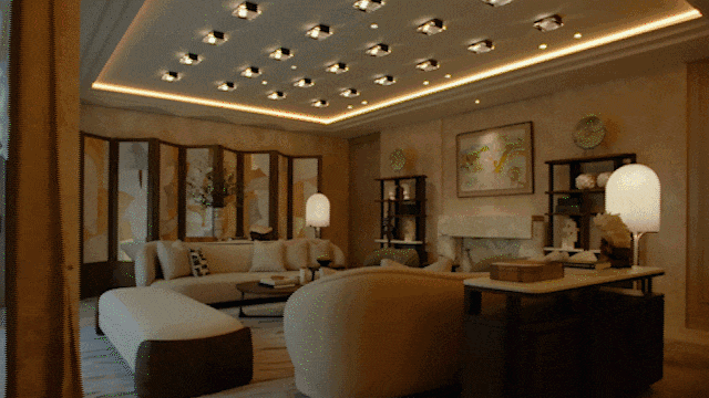 会所内的泳池上方做流畅且立体的吊顶线条,造型现代且富有层次感。这样的设计不仅提升了空间的视觉效果,更营造出一种轻松、悠闲的度假氛围。