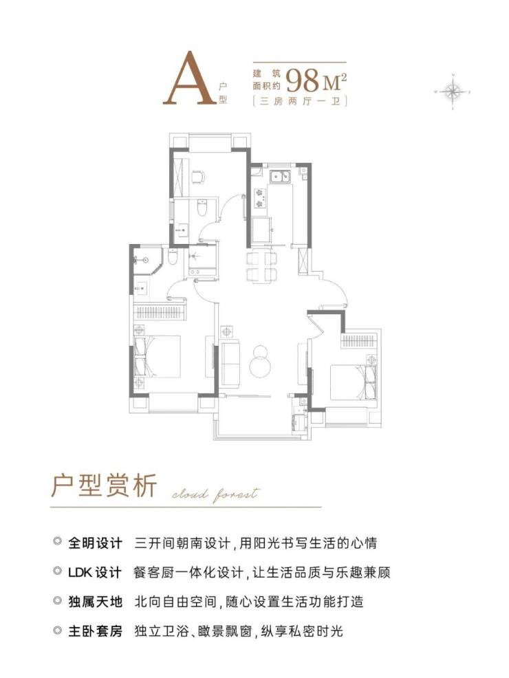 A户型 建面约98㎡3房