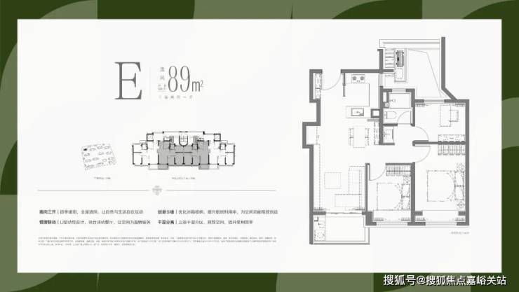 1、全部南向大面宽设计,保证最为出众的采光和视野需求;