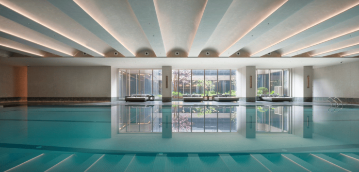 嘉定主城首个约1500㎡恒温泳池会所,对标国际星级酒店的标准,将艺术品位、生活意趣、空间意境与休闲体验完美融合,会所外的下沉星光悬瀑水景庭院同样是区域内仅有的奢华配套。想象一下,当你在健身房挥汗如雨或在泳池里尽情畅游时,落地窗外就是琉璃水光和自然景观的诗意碰撞。更颠覆的是性价比——黄浦滨江某16万+/㎡豪宅仅配1200㎡会所,南山璞缦则是以更宽敞更丰富的空间配置,呈现更全面更高端的生活体验。