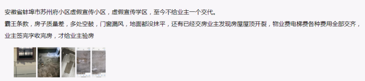 ②房屋质量问题:有多个网友反映拿到手的房子存在各种问题,好在开发商有回复表示可以对有问题的房屋进行修缮;