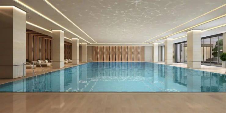 约3500㎡配套,室内恒温镜面泳池、健身中心、瑜伽室……,多维度休闲社交体验。
