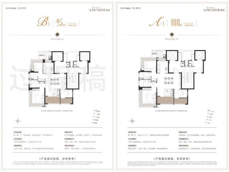无论是95㎡还是108㎡的产品,均采用高利用率的飞机户型,有效减少走道的空间浪费。还规划有南向双阳台+双转角飘窗(边套),整体的附加面积接近10㎡。