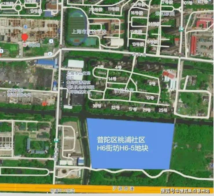 2023年年4月18日,首轮土拍第二日,浙江交投&象屿地产联合体以总价377800万元价格,竞得普陀区桃浦社区H6街坊H6-5地块,地块占地面积33997.6㎡,容积率2.5,楼板价44450元/㎡,溢价率9.51%。