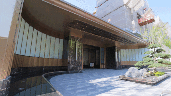 入户门庭,宛若城市桃源巨幕画境,“十三折”屏扇莲庭,取意中国长卷画幅13: 1宽高比,一如富春山居图彰显世家风雅。甄选每⼀块透光奢⽯的纹理,形成如同中国山水画的肌理质感,营造当代文化审美。罗汉松造景,寓意东方人文精神与美好生活。