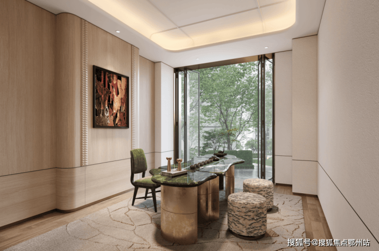 玻璃客厅,打造“无界屏”美学会所,推拉玻璃自由拾光,实现空间场景瞬时转换。270°会所空间星空吧台、云端健身馆、茶道禅庭等,多元生活场景。