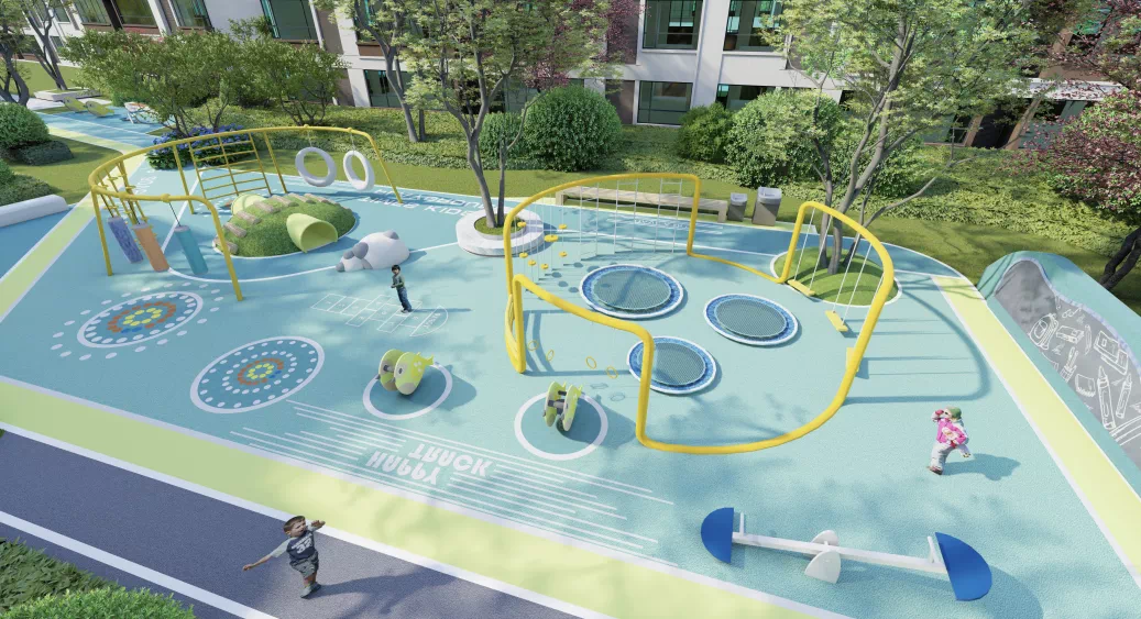 27#楼近享环形荧光漫步跑道,在满眼绿意和鲜氧中,健身散步,老友新邻,尽享欢乐。更有儿童成长空间、老人活动场所、青年运动健身区域、户外会客厅,打造自然活力、多彩灵动的九州山居生活,给每一位业主一个全龄段的和顺家。