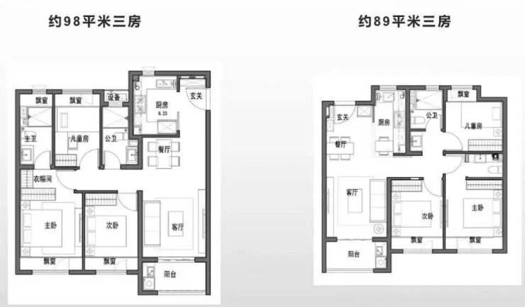 户型选择丰富,建面约89㎡3房2厅1卫(92套)、建面约98㎡3房2厅2卫(92套)、建面约130㎡4房2厅2卫(56套);叠加(56套):建面约145㎡上叠、建面约155㎡下叠。
