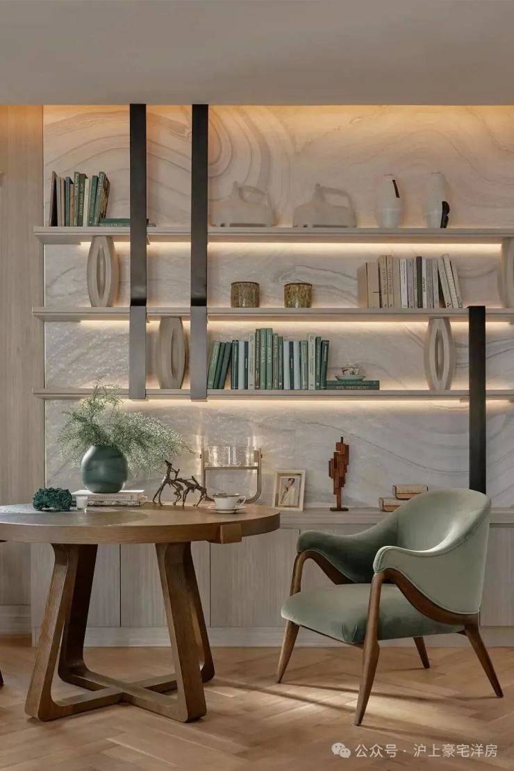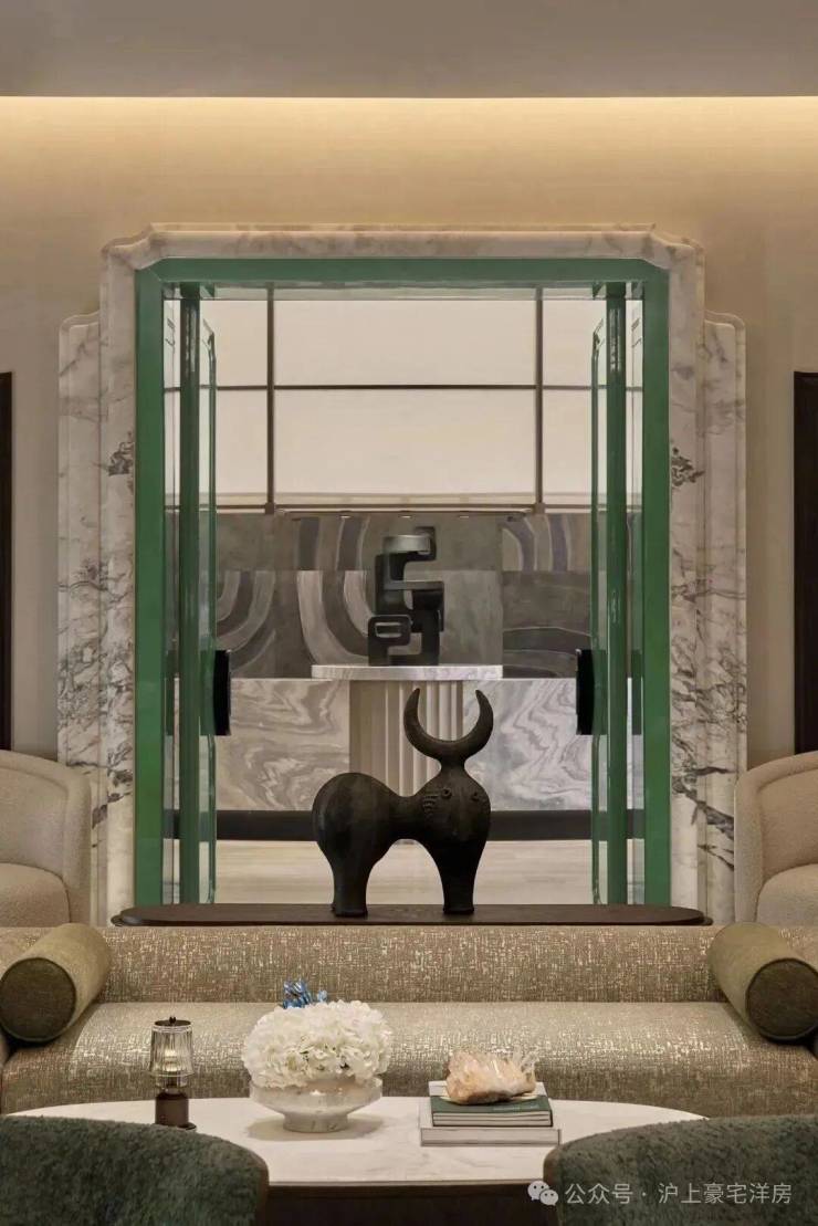 当Art Deco几何纹样与海派花砖暗纹悄然呼应,空间便完成了对新旧共生的又一诠释:所有物质都在克制表达中,回归生活本真的呼吸节奏。