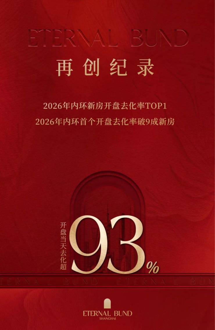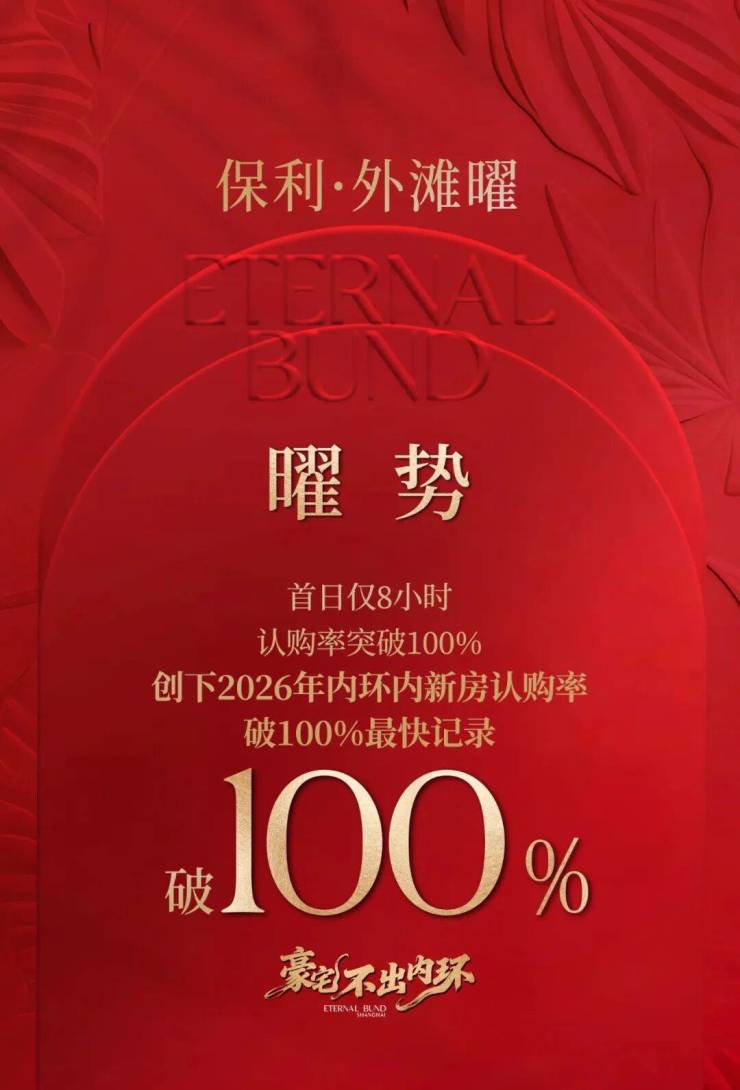 再创纪录!2026年内环新房开盘去化率TOP1开盘当天去化率93%,内环还看保利外滩曜!