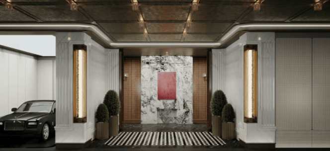 社区主入口更是兼具豪华酒店与海派元素设计风格,挑高约6米的入户大堂、水系景观与艺术家共创作品交相辉映,奢华感和高级感拉满!
