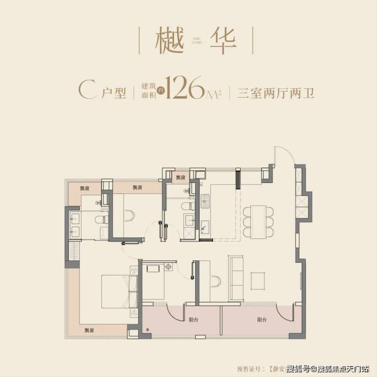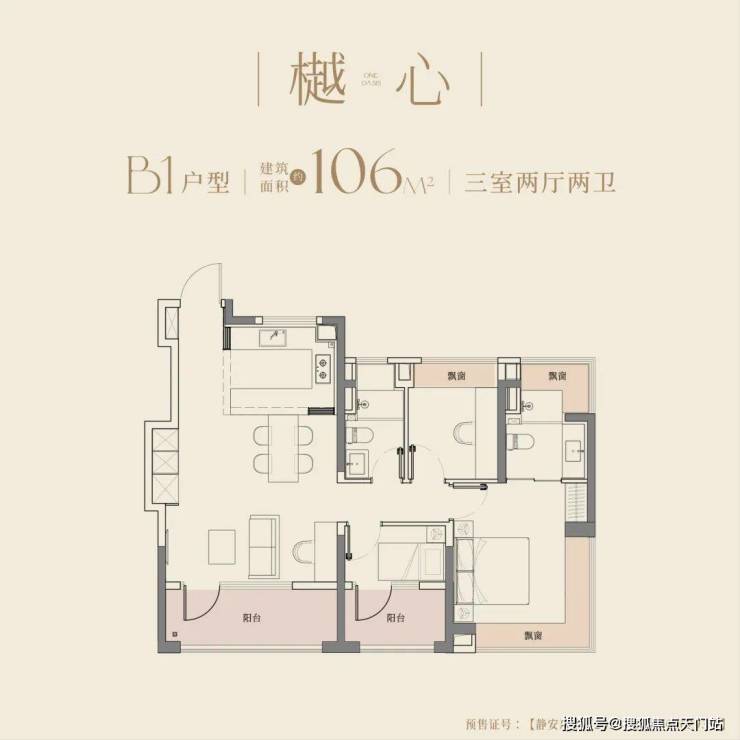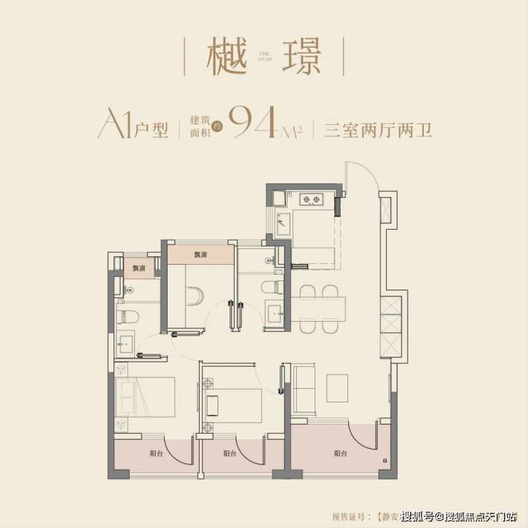 94㎡三房两卫:三阳台 + 全景飘窗,最高可拓展约19㎡