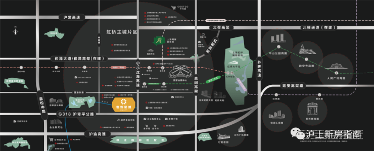 自驾:三横三纵的立体式道路交通网络(三横为崧泽大道、沪青平公路、沪渝高速,三纵为沈海高速、嘉闵高架、外环高速),自驾可速至市中心和各大核心商圈