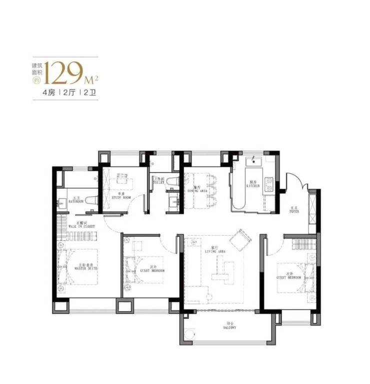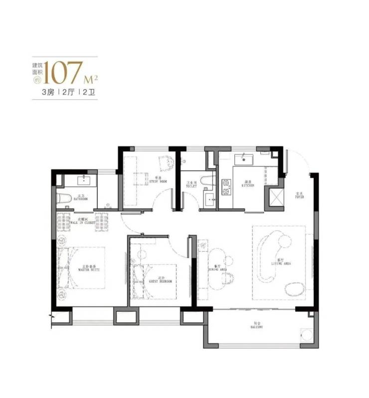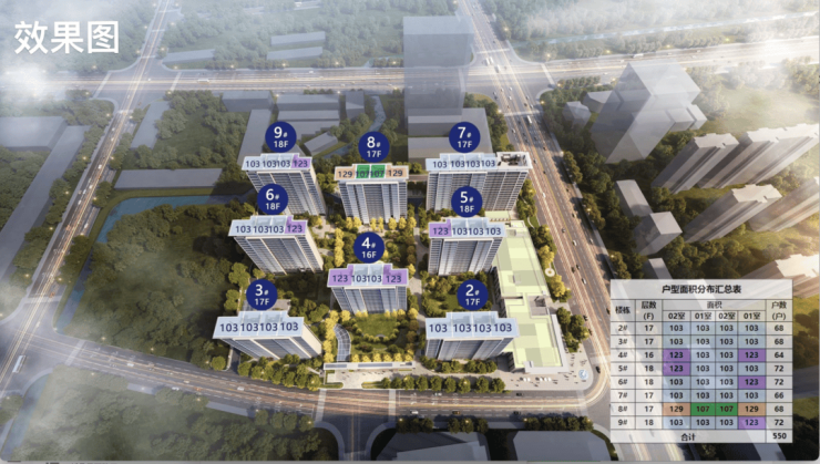 「星尚·观澜世嘉」共计4种户型,103㎡、107㎡的三房两厅两卫及123㎡、129㎡的四房两厅两卫,共计550套可售住宅。