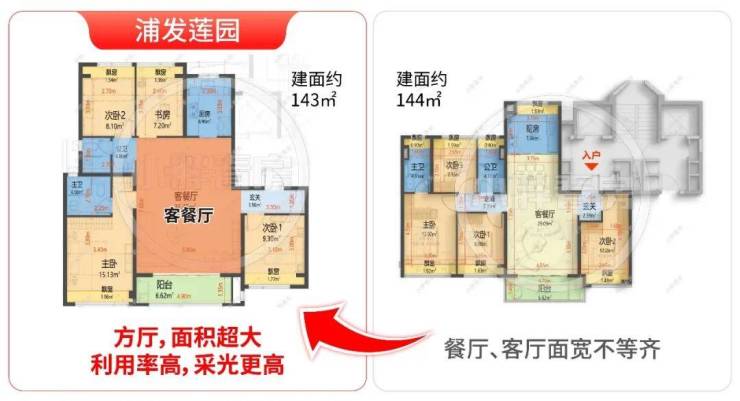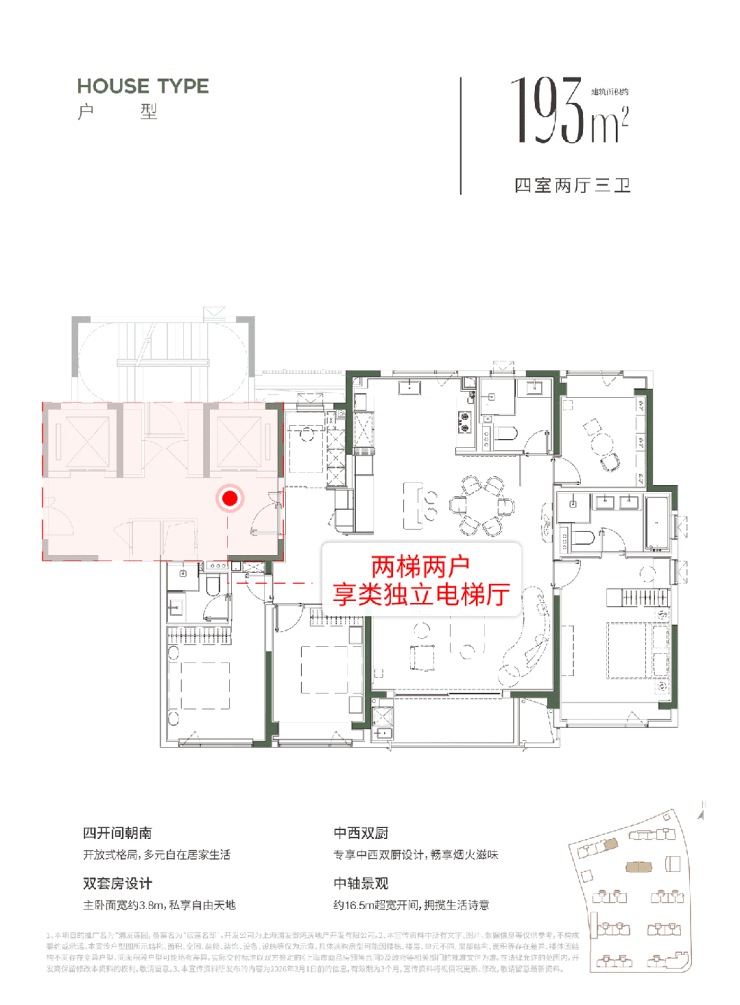 两梯两户,享独立电梯厅;入户还享带采光的独立储藏室;南向四开间朝南,面宽达约16.5米;超大方厅,利用率高;主卧面宽达约3.8米。