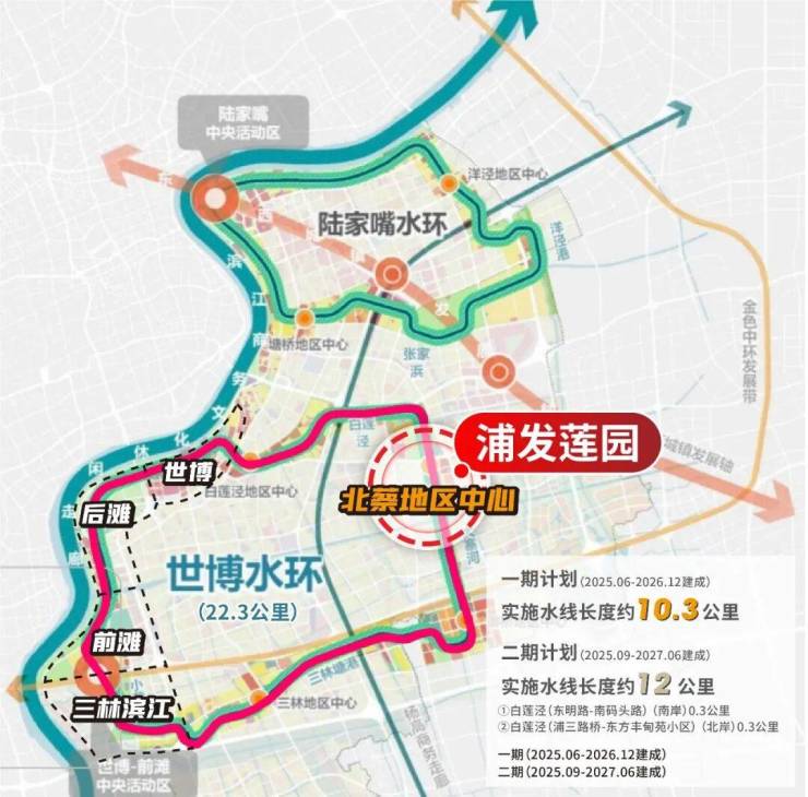 作为浦东 “一江一河” 向腹地延伸的重点工程,世博水环与陆家嘴水环形成双环格局,而浦发莲园正占据世博水环核心节点,坐享三重利好: