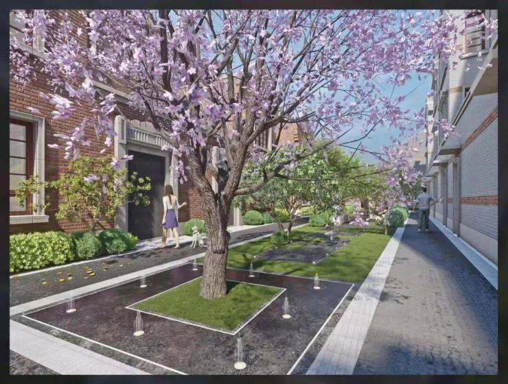 保留众多优秀历史建筑,传承海派文化,景观设计融合摩登艺术与文脉体验,满足对文化传承的需求。小区沿新闸路界面,成都北陆两边将延展高端商业配套,商业与绿地融合,业主下楼即可享受便捷生活服务。
