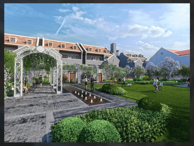 ② 330-550㎡的联排、双拼和独栋别墅,拓宽巷道6-8米,首层高 3.6 米,采光好,无压抑感,利用率高。