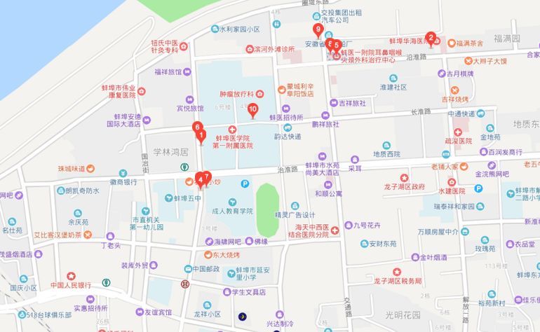 6. 蚌埠医学院排名前列附属医院位于龙子湖区,12.2万平方米的肿瘤综合楼和1.08万平方米的(感染)综合病房楼目前正在建设,预计今年可投入使用。蚌埠医学院排名前列附属医院(蚌埠医学院附属肿瘤医院)是皖北地区规模较大的集医疗、教学、科研、预防、康复、保健和急救为一体的大型综合性医院,也是卫生部首批三级甲等医院、高级爱婴医院、国家药物临床试验机构。医院始建于1952年,前身为国家水利部治淮委员会直属医院。占地面积291亩,总建筑面积37.35万平方米。现有临床科室39个,医技科室7个,临床教研室23个,实际开放床位2464余张,承担着皖北地区3000多万人口的医疗保健任务,医疗辐射面积4.2万平方公里。