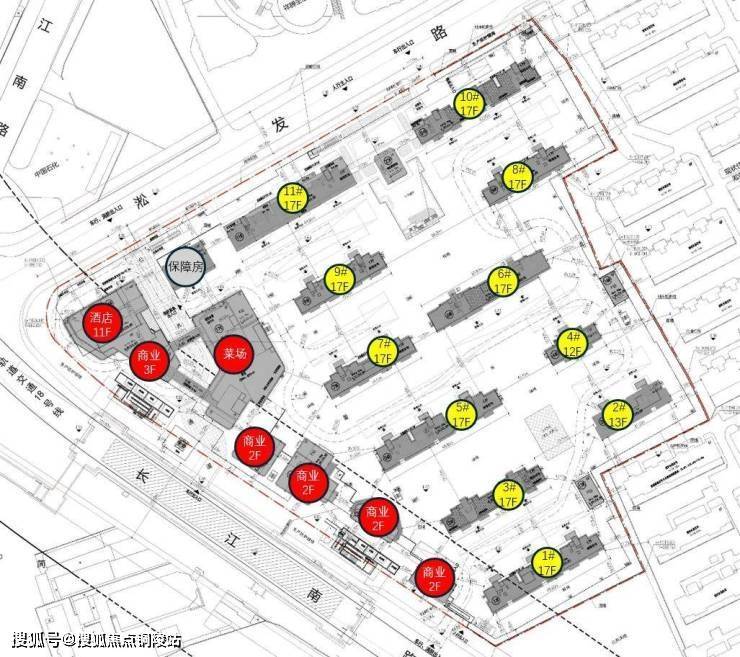 项目总建筑面积18.8万㎡,地上计容总建筑面积12.48万㎡。根据项目规划设计方案:项目拟建11栋12-17层可售住宅,总户数876户,可售住宅约807套;另需建设1栋保障性住宅房,靠近长江南路一侧规划有酒店、商业、菜场、社区食堂等业态。