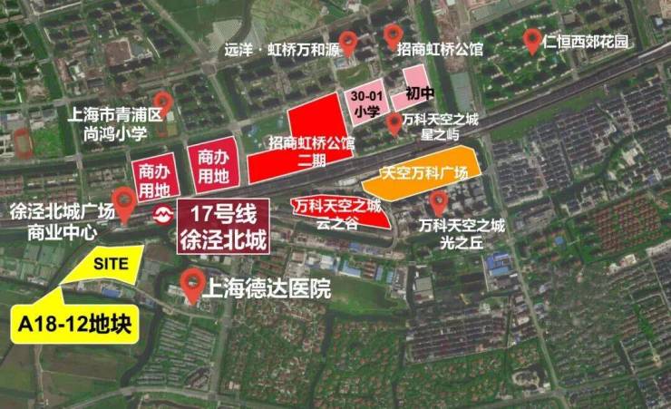 项目北侧紧邻17号线徐泾北城站(暂时需绕行河道),1站可达徐盈路天空万科广场,2站至蟠龙古镇商业区,3站直达国家会展中心,4站即达虹桥枢纽。