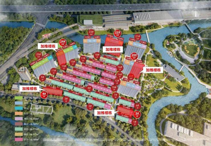 高层住宅沿地块西、北、东三侧分布,靠近崧泽大道,多层及低层住宅则位于地块中心区域,形成错落有致的天际线。