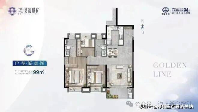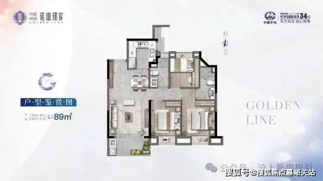 中铁诺德•璟宸有三种户型:约89平的三房两卫,约99平的三房两卫,和约129平的四房两卫。
