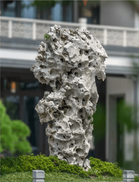 值得一提石材造景,“璟雲里”山石布局错落有致,形态各异,尤其一块完美的太湖石让整个园景气质更上一层。
