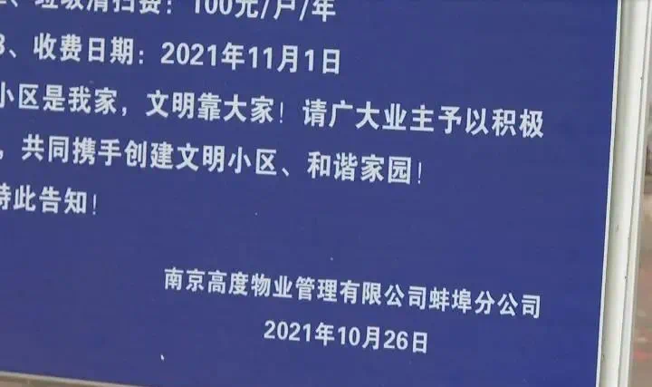 在小区门口,记者看到一份通知,通知里写着,纬一小区的物业服务公司为南京高度物业管理有限公司蚌埠分公司,这家物业公司是2017年入驻这个小区。为了方便管理,物业公司安装道闸,并且要对小区内业主的车辆,实行停车收费,收费标准为70块钱一个月。可是李双喜却说,他住进来这几年,从来没听说过小区有物业公司这回事,没有和任何公司签过物业服务合同,也没交过物业费。李双喜说,我来的时候我也问了,人家说这个归街道管,而且小区出现的问题都是社区解决的,就没有物业公司这回事。记者也在小区里询问了一些居民,有一直在这里居住的老住户表示,近几年到小区搞卫生的都是社区的人,没听说来了物业公司。小区居民也纷纷表示,卫生都是居委会来打扫的,2017年就说有物业了。李双喜现在想弄清楚,在小区收费的到底是谁,收费的依据又是什么?李双喜说,你在我家门口装一个道闸来问我收费,必须要有收费标准和收费依据。带着李双喜的疑问,记者找到了这家南京高度物业管理有限公司蚌埠分公司的负责人,负责人表示,纬一小区确实是他们服务的小区,门口的道闸也是他们安装的,收费也是经过主管单位同意的。