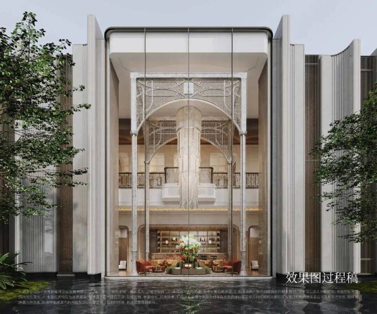 项目深度汲取国际顶级酒店的美学精髓,同时融合上海经典建筑中的海派元素,以“仪式感、纯粹性、细节感”为核心,打造兼具国际风范与本地底蕴的建筑格调。