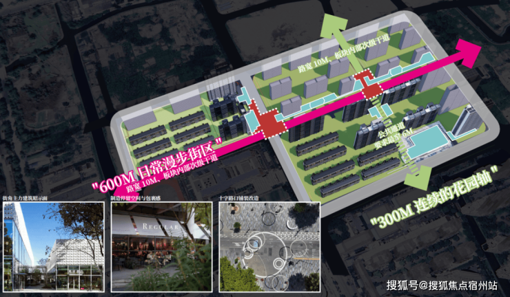 这些丰富的生活场景,则由两条景观轴线串联:一条是约300米的连续花园轴;一条是约600米的日常漫步街区。与此同时,项目在街角处还打造了多个口袋公园!